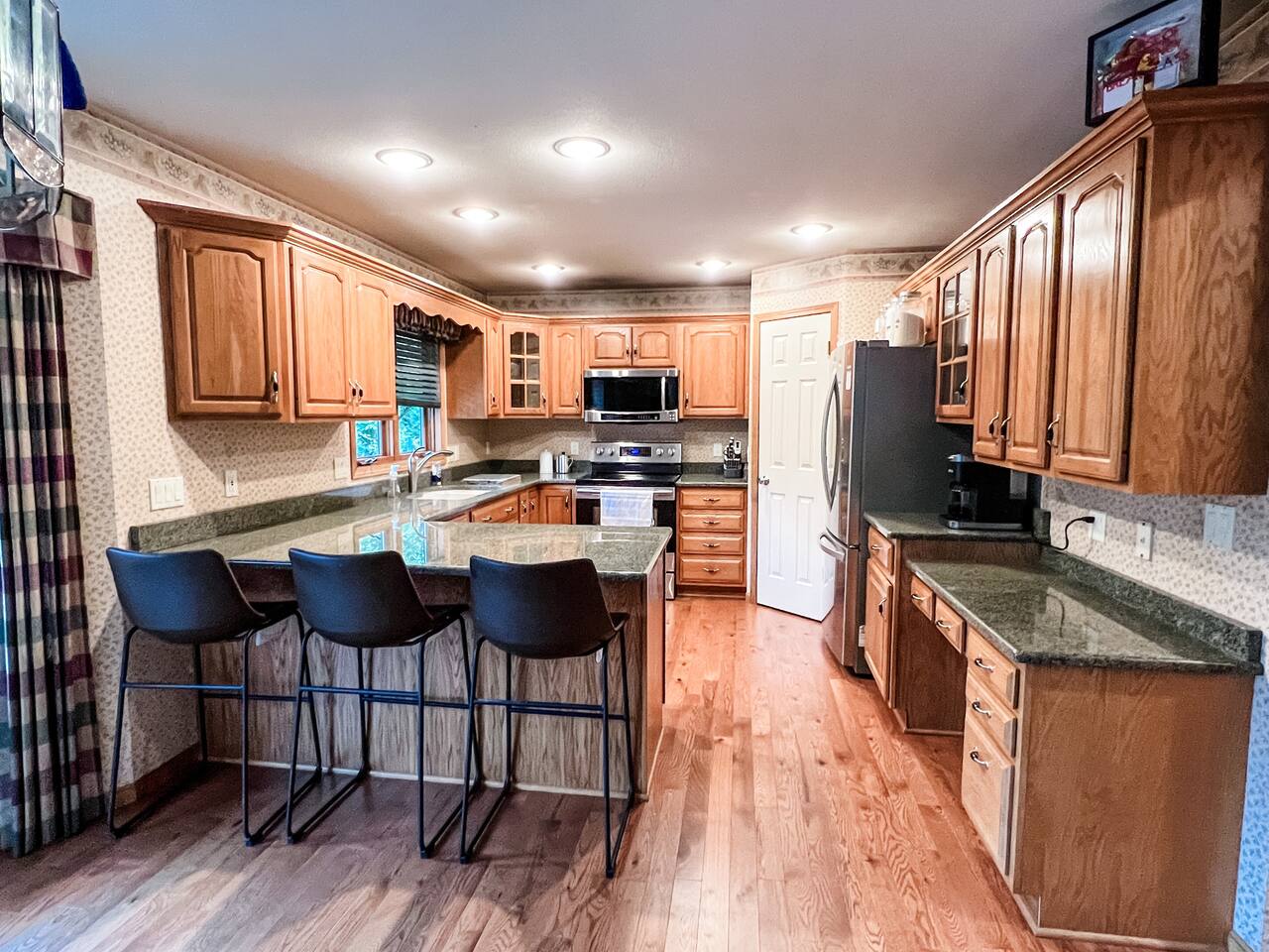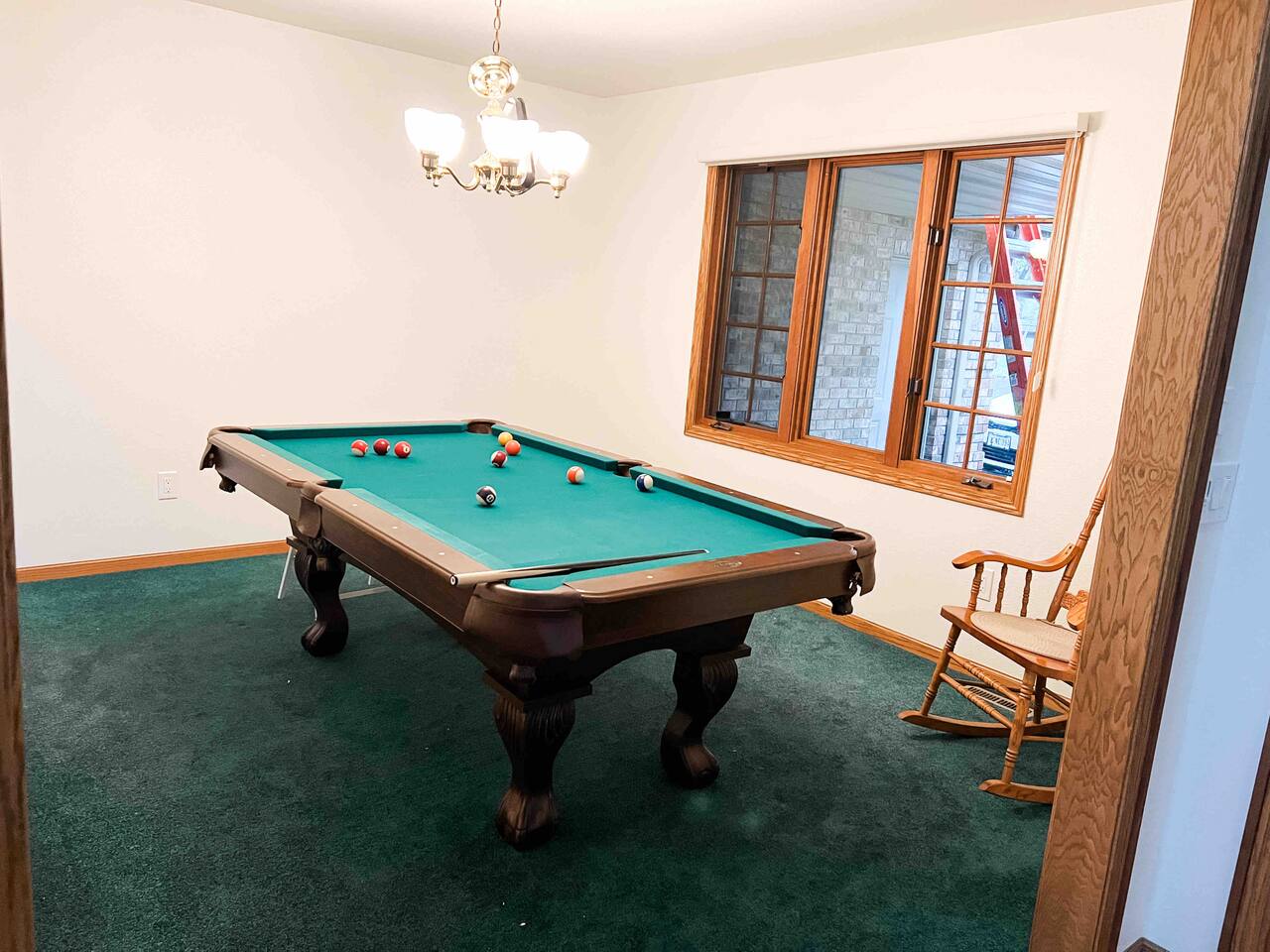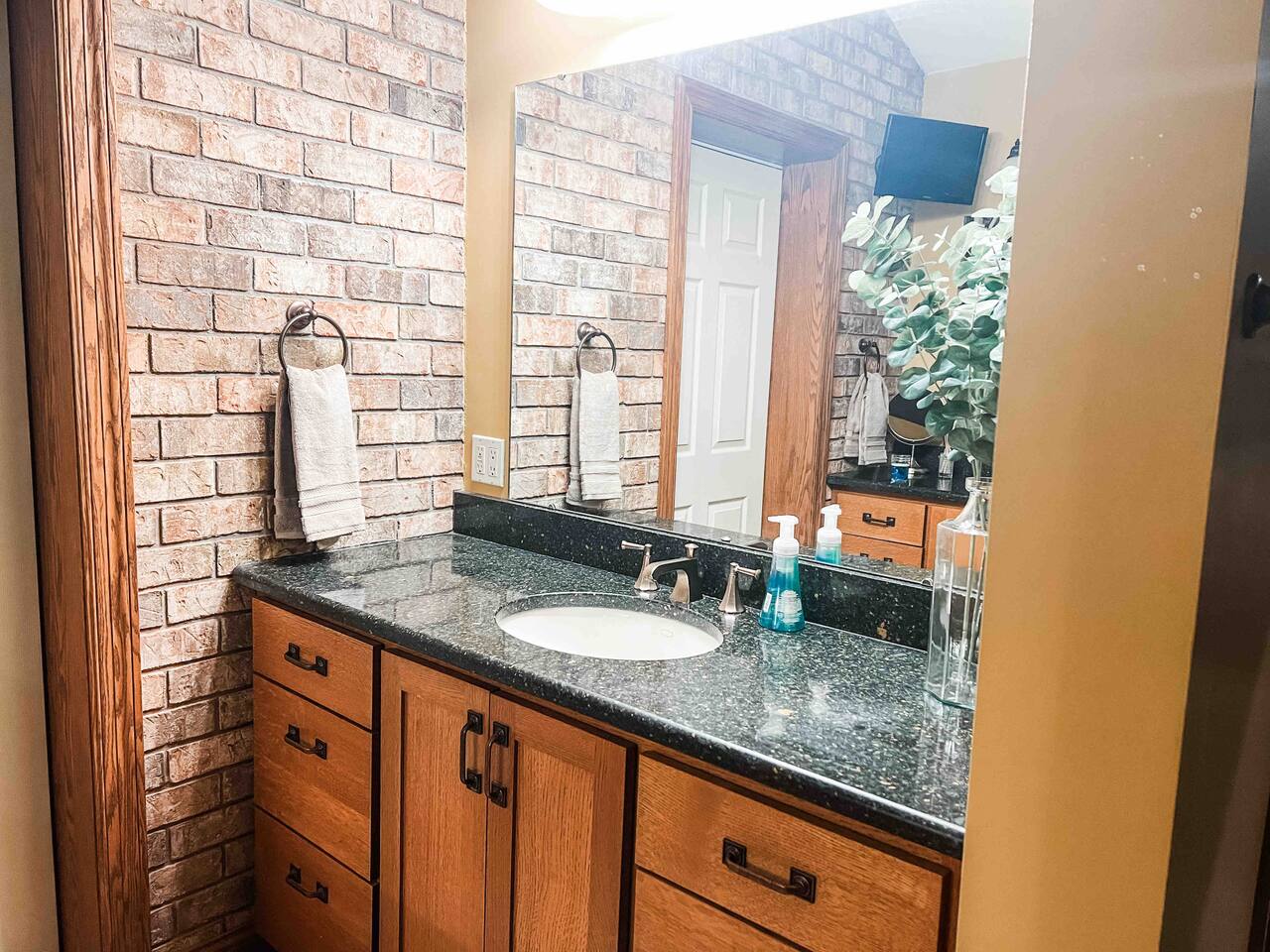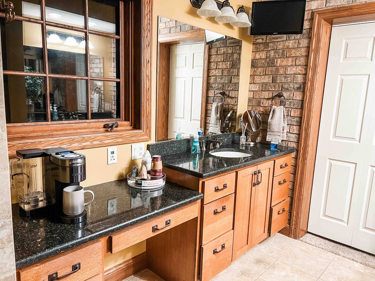 Beautiful bricked home is on 3 acres in the back of a quiet, wooded neighborhood. Our home has a king bed in a large master suite that includes a soaker tub, large shower, private gas fireplace, and heated bathroom floors. The suite also boasts a private outdoor deck with its own gas fire pit. The home also two kitchens and four separate den/family room areas. Additional amenities include a 7 person hot tub, pool table and dart board game room, and several large outdoor patios.